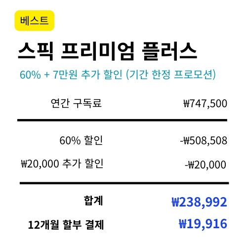 - 1년이 지난 후에도 할인된 가격으로 구독하실 수 있기 때문에, 스픽을 구독하실 분들이라면 2026.01.01~2026.01.12 최대 할인 기간에 스픽을 구독하실 것을 추천합니다.