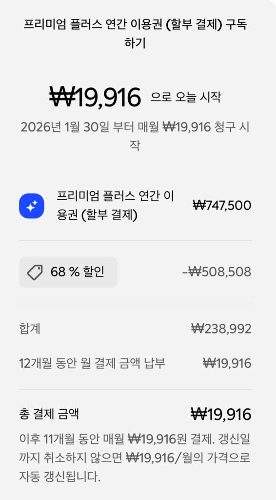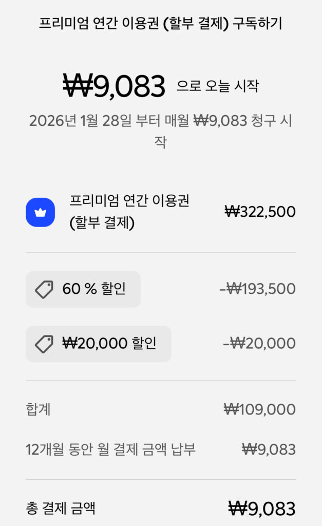 2️⃣ 할인된 가격 확인 및 할부 결제 여부 선택